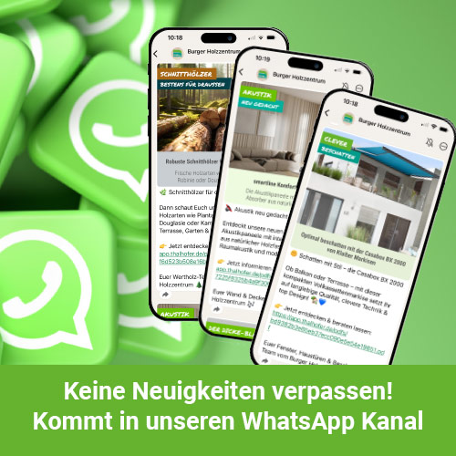 Mit den BURGER NEWS bleibt ihr immer auf dem Laufenden: Aktionen, Neuheiten und Inspiration rund um Holz, Türen, Böden, Platten und mehr. Unser Newsletter liefert euch die wichtigsten Infos kompakt und aktuell – direkt für eure Projekte. Jetzt entdecken!